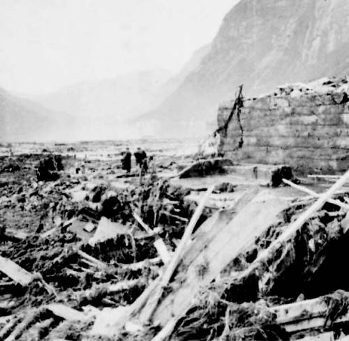 Ca. år: 1930, Vebyg164.jpg 1930047 / Ulykke / Bygning / Bødal / Type: BRO Gen / Etter ulykka 1936. Restane av bruk nr 9 - Solvang, som låg lengs vekk frå raset