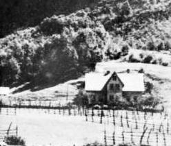 | Ca. år: 1930, Vebyg076.jpg 1930010 / Natur / Bygning / Bødal / Type: BRO. Gen / Skole-huset. Erke- og Knut-bruket Bødal. Huset fremst til venstre er skulehuset. Huset med arkoppbygg til høgre er Knut-bruket. Bakanfor skulehuset ligg Erke-bruket |