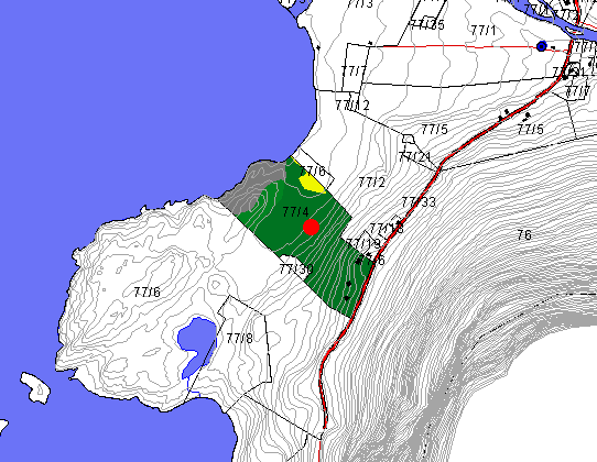 Gardskart frå LGIS ca år 2000 for Gjerstunbruket, bruk nr 77/4 i Bødal. Viser berre innmarka