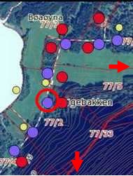 Frå vegen nedanfor dei gamle tuna til Erkebruket og Knutebruket er det utsikt mot staden for det gamle Bødalstunet før 1905. Det einaste ein ser no er krattskogen langs stranda.
