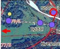 Tur: Historisk vandring i Bødal Parkeringsplassen på nordsida av elva. 8/7-2010 . På grunn av at parkeringsplassen ved minnetavla var full av bilar, valde vi å køyre tilbake til Bødal og parkere på nordsida av brua over Bødalselva. Dette var grunnen til av vi gikk den historiske vandringa i motsett retning av det som var oppmerka. Frå parkeringsplassen er det flott utsikt mot Ramnefjellet som i si tid la Bødal øyde. På andre sida av elva ser vi dagens hus på Kolbeinbruket, og traktorvegen mot Lovatnet bår bak det.