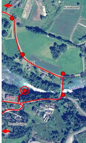 Bilder som viser saghølen i Loelva både på sørsida (kvia) og på norsida (skora) samt utlaupet av laksetrappa og Lofossen Saghølen er den beste fikseplassen etter laks i Loelva. Laksen kjem ikke opp Lofossen, men på midten av 1950-talet vart det bygt laksetrapp slik at laksen kan gå også til øvre elv. Laksetrappa føl den same traseen som frå gamlt førde vatn til kvernene og til eit sagbruk.Laksefikset er i dag utleigt til Bergen sportsfisekrlag. Før ulukka i 1936 var det steinbru over lofossen. Den vart riven bort i ulukka I 2005 vart det rydda skog og lag betre sti ned til Saghølen. På denne måten vart det betre utsikt mot fiskeplassen frå vegen. Neste utsiktspunkt på Brennhaugen med utsikt over NK og industriområdet. |