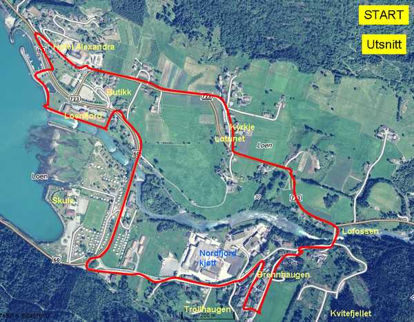 Start er Lotunet. Dette e ein rundtur rundt Loen, og ved å velge kartutsnitt kan ein starte turen kvar som helst eller berre sjå på deler av tuern