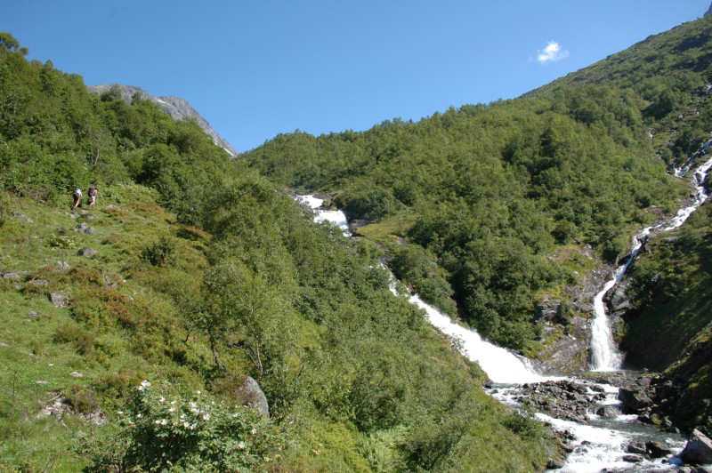 Utsikt frå stien mot skåla mot staden der Fosdøla møter Skåleelva.