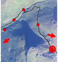 Frå Skålevatent går stien først opp i skaret mot søraust. Deretter mot nord langs kanten av bratthenget mot Loen og så mot aust opp til toppen og Skålatårnet.