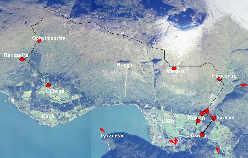 Eksempel på kartbilde med tursti på Lofjellet er nytta som illustrajonsbilde her på startsida for fottur.
