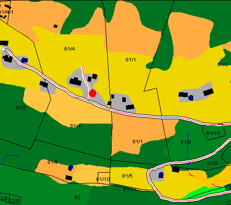 Kartutsnitt som viser tunet på Utigardsbruket (bruk nr 4) på Oppheim. Kilde ØK