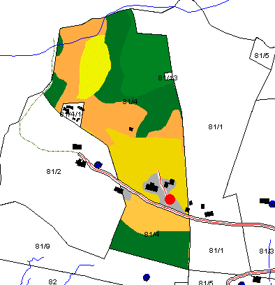 Gårdskart for Utigardsbruket (bruk nr 4) på Oppheim. Kilde ØK. Utmarka i Rake-Oppheim-området er ikke fullstendig fordelt på eiendommer på ØK, og utnmarksteiger kan mangle i gårdskartet