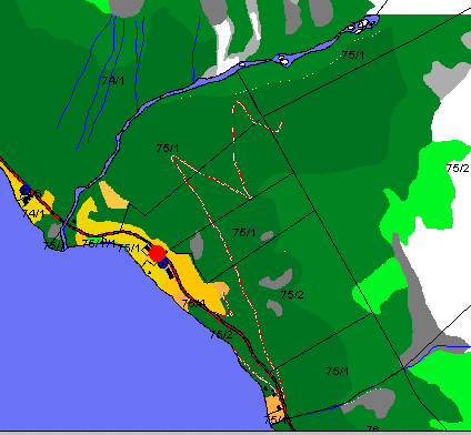 Kartutsnitt som viser tunet på bruk nr 75/1 på Hogrenning