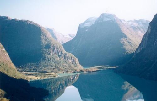 Oversiktsbilde over Bødal og Nesdal med fjella, teke nedanfra og oppover. Foto: Håkon Loen