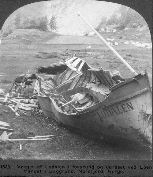 Ca. år: 1905, Dampbåten Lodalen etter rasulukka i 1905. Kopiert frå facebook. Lagt ut av Larsk Kåre Skeide