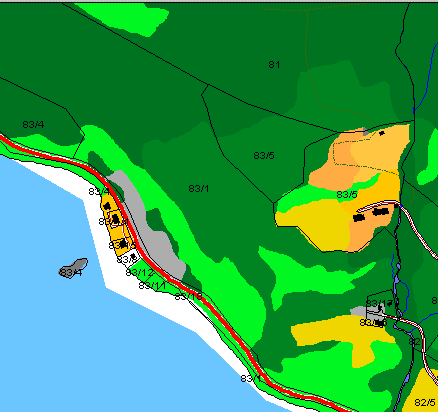 Kartutsnitt som viser innmarka på garden Marså, gnr 83. Kilde ØK