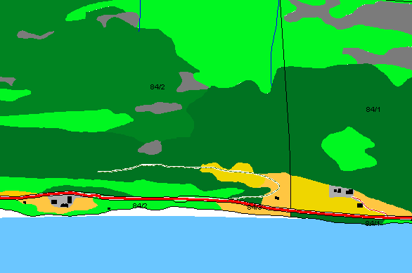Kartutsnitt som viser innmarka på garden Strand, gnr 84. Kilde ØK