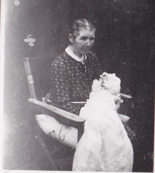 Ca. år: 1945, Marits dåpsdag. Marits farmor Berthe Haug som holder Marit
