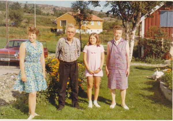 Ca. år: 1973, Peder sitt Album. Avreise frå Hitra 1973. Frå venstre: Marta, Peder senior, Ingrid (dotter til Peder sin bror- Iver) og Randi (mor til Peder)