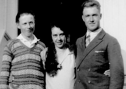 Knut Haug, Martha og Oskar i inngangsdøra til Slettenveine