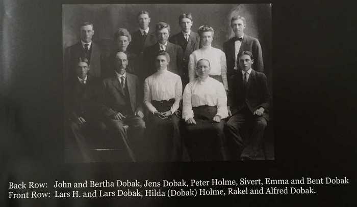 Ca. år: 1925, Lars og Rakel Dobak med familie. Gruppebilde. Kilde: Paulette Holme Medin. Ikkje tidfesta men ca 1920-1925