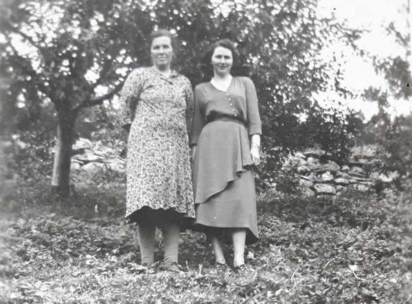 Gamle Marte Sande album. Elisa Sande, gift Sollid på Sandane, og niese Anna Skarstein. Elisa er dotter av Marte og Sivert.