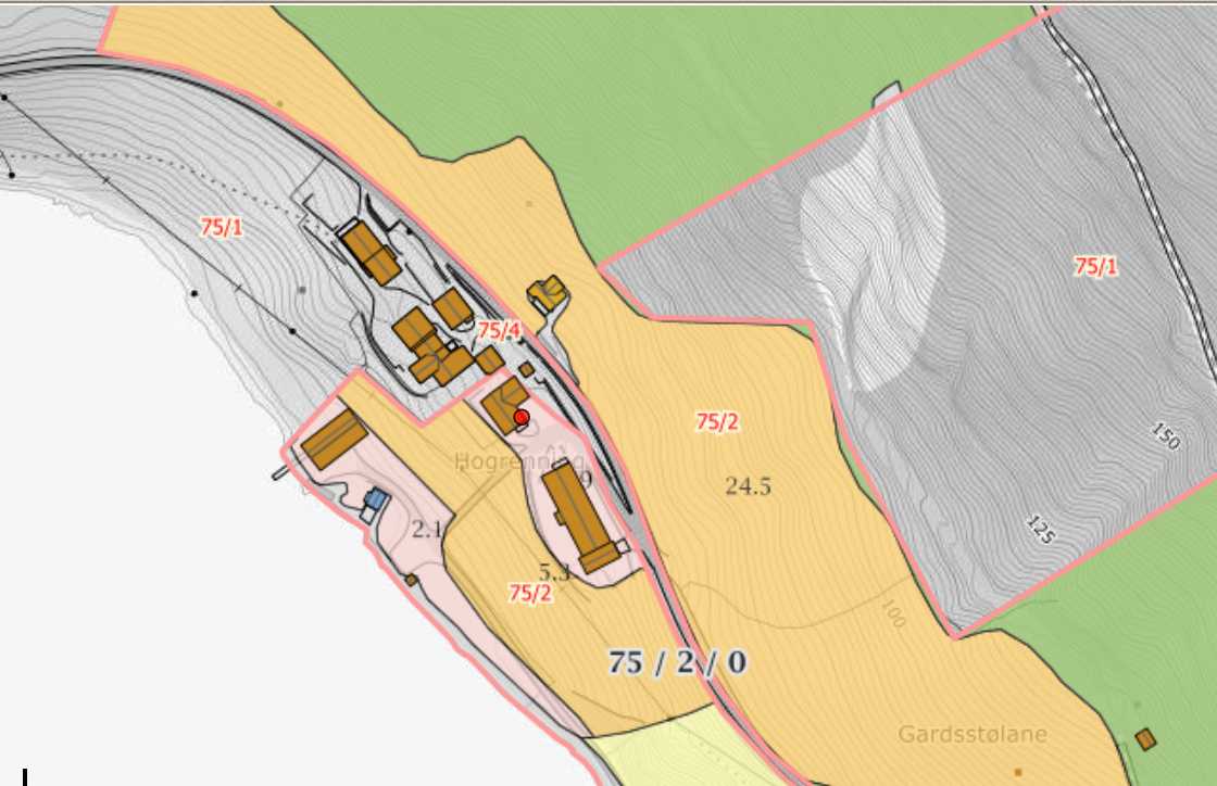2. Flybilde. Utsnitt som viser Hogrenning, bruk nr 75/2. 1954