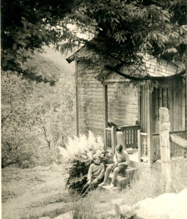 7. 1952 Lars (venstre) og Audun på trappa til nystova
