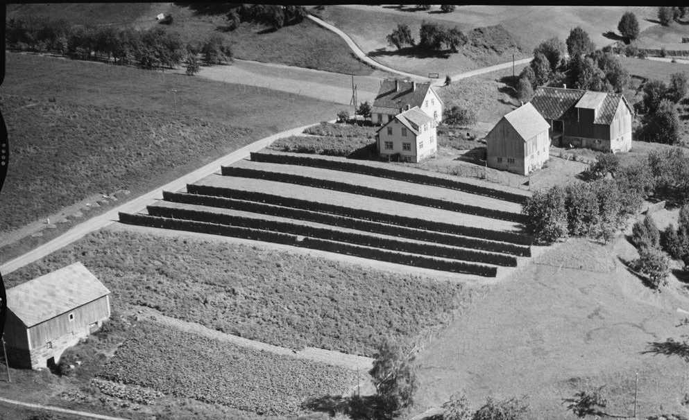 2. Flybilde som viser Nyheim (Gjerstunbruket) i Loen. 1954