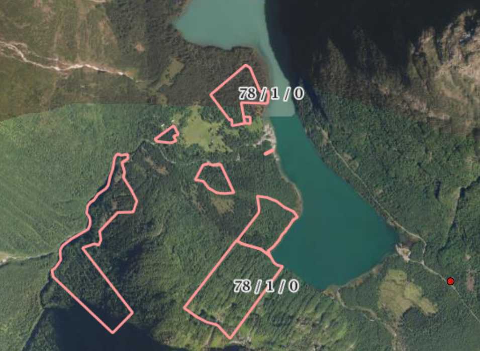 2. Gårdskart for Mons-bruket i Nesdal indre, bruksnr 78/1.