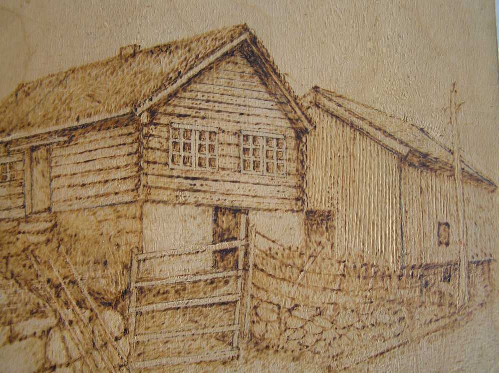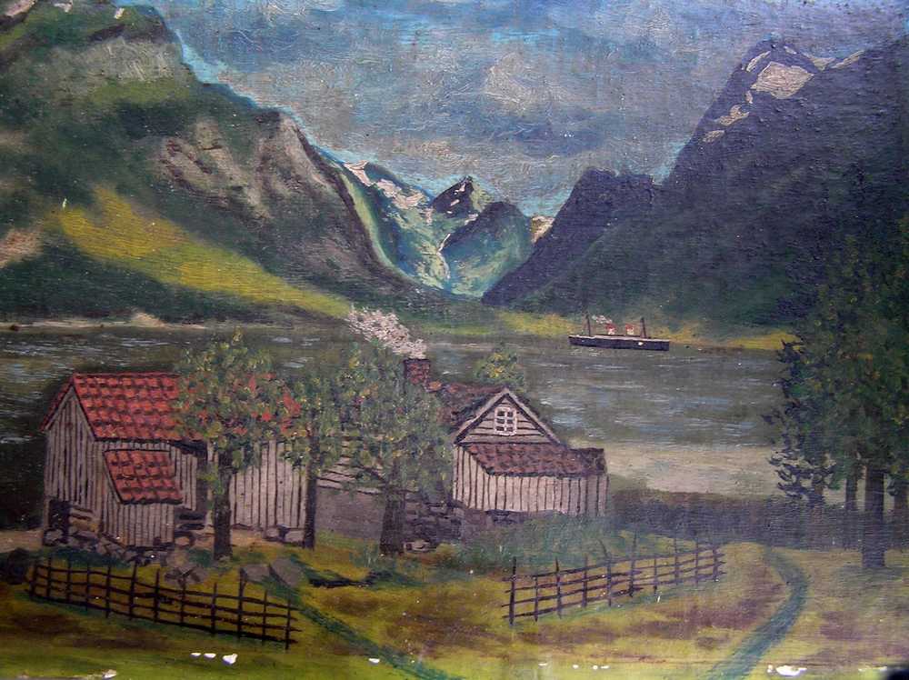 1. Gamalt måleri av tunet med utsikt mot Olden. 1930