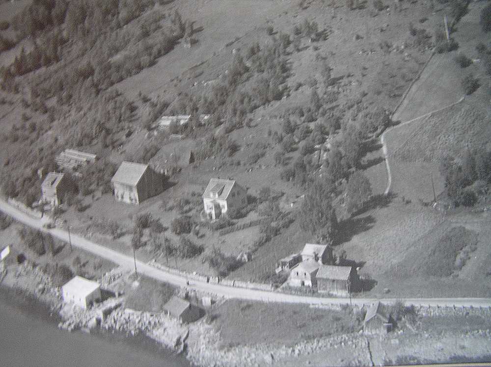3.2. Flyfoto frå Solvik. Tunet på bruk 82/7 til høgre. Ca 1950