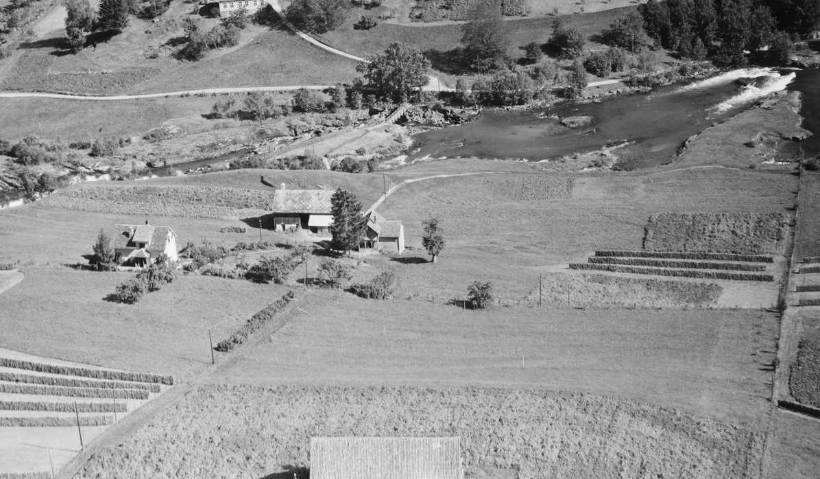 2. Flybilde som viser Mattis-bruket på Sæten, bruksnr 80/9. 1954