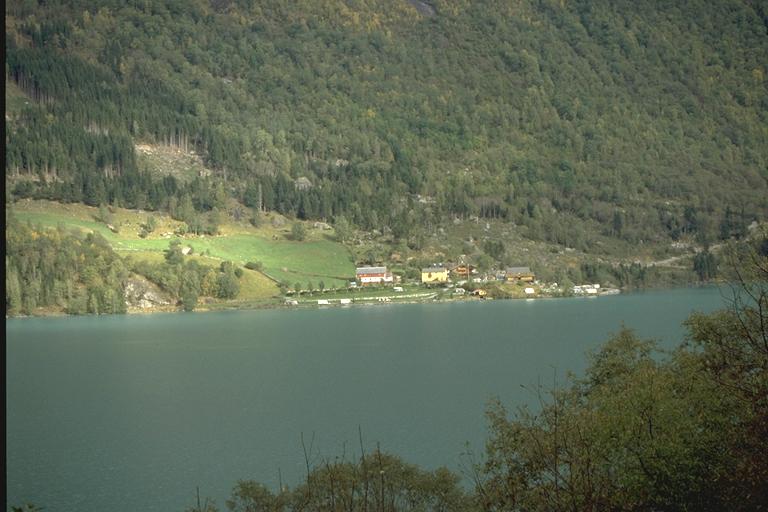 1. Sande (bruknr 73/3), sett fra andre sida av vatnet. 1999