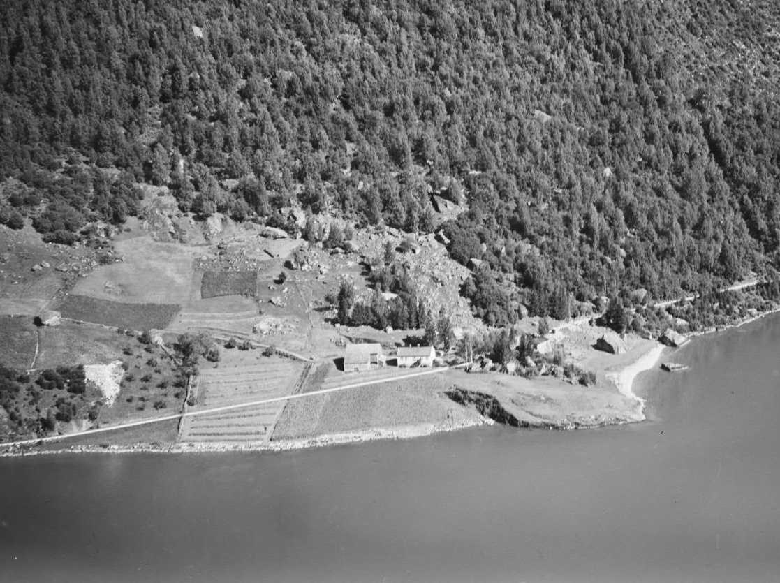 2. Flybilde som viser tunet på Sande, bruk nr 73/3. 1954