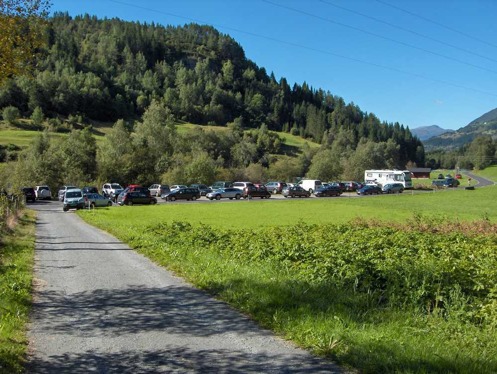 5. Parkeringsplassen for Skåla full av bilar