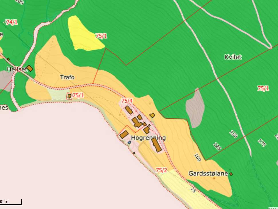 4. Kartgrunnlaget for Gardskart. Utsnitt som viser Hogrenning. Kopiert 2018