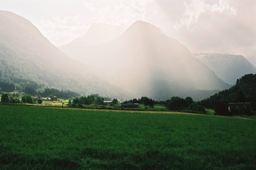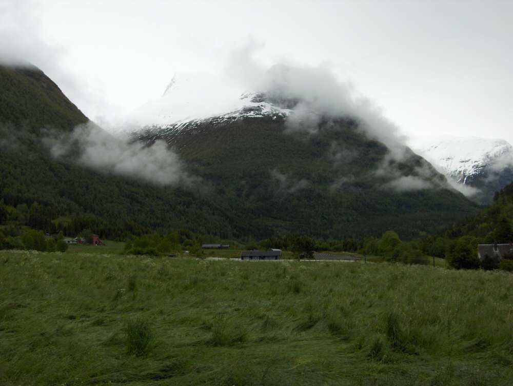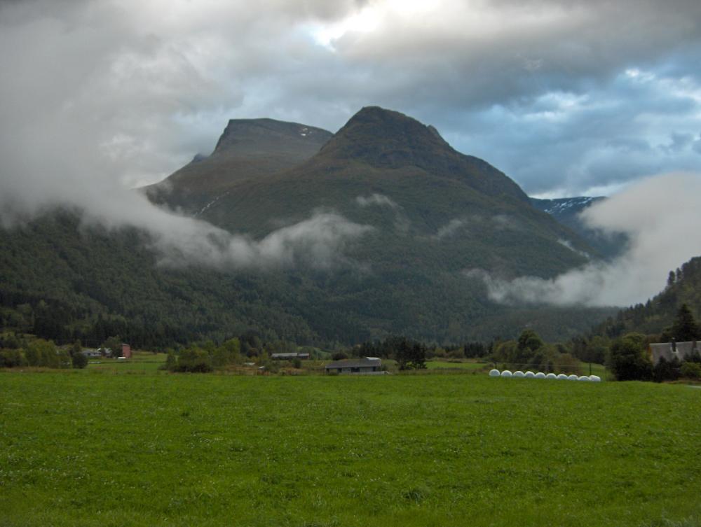 21.Utsikt mot Skåla frå Lotunet. Sommar med regn og tåke