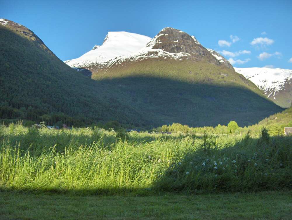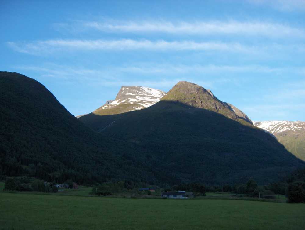 20. Utsikt mot Skåla frå Lotunet. Sommar med kveldssol.