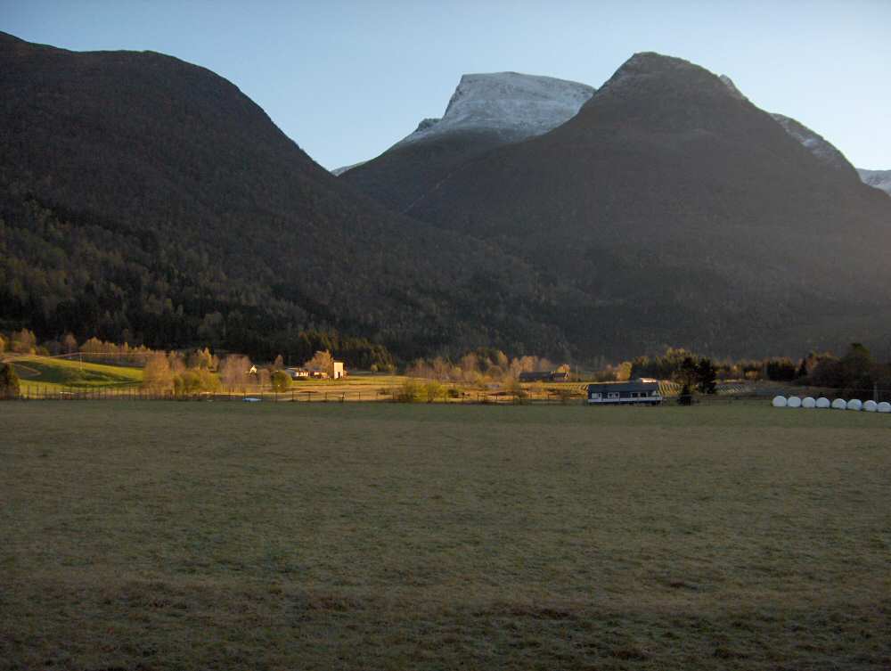 25.Utsikt mot Skåla frå Lotunet. Soloppgang - tidleg haust.