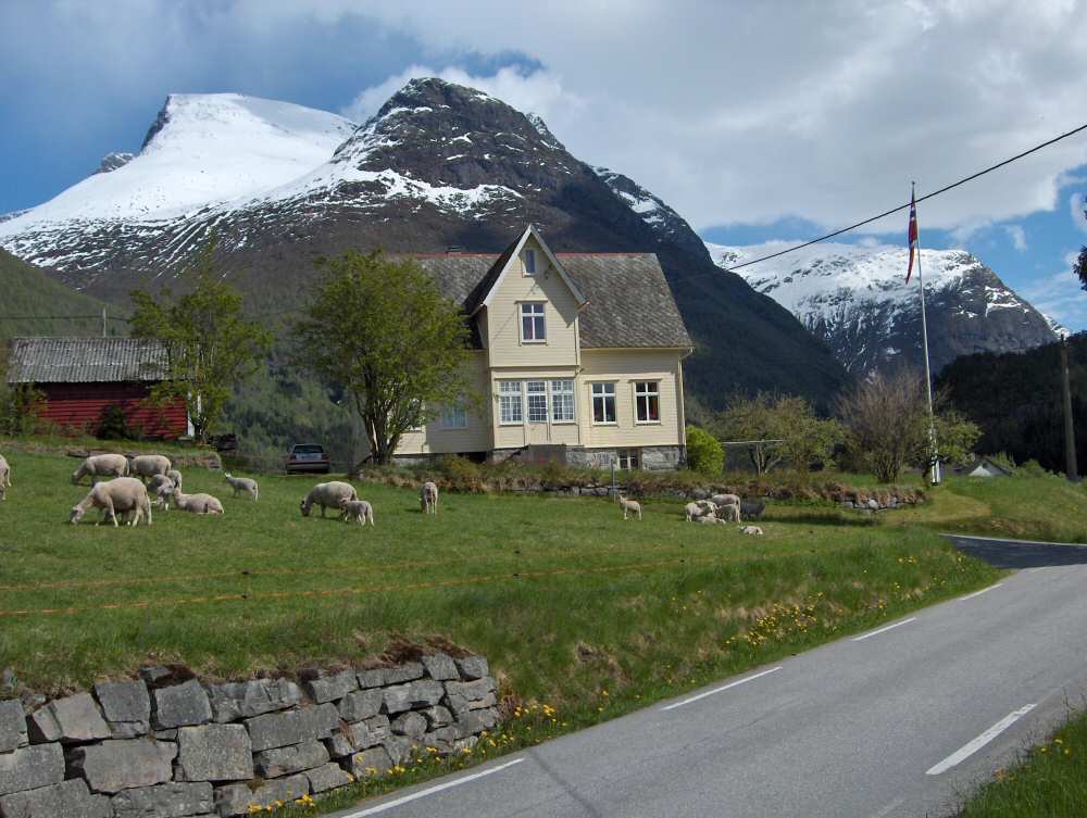 7. Skåla sett frå nærbutikiken i Loen ved fjorden