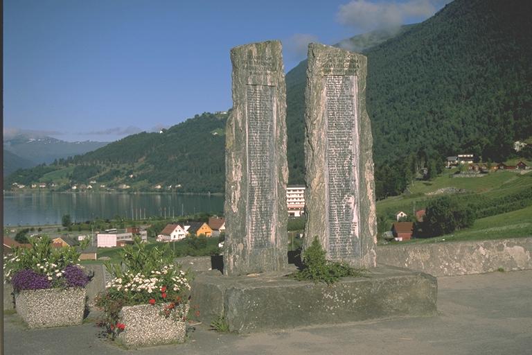Minnestein ved Loen kyrkje.