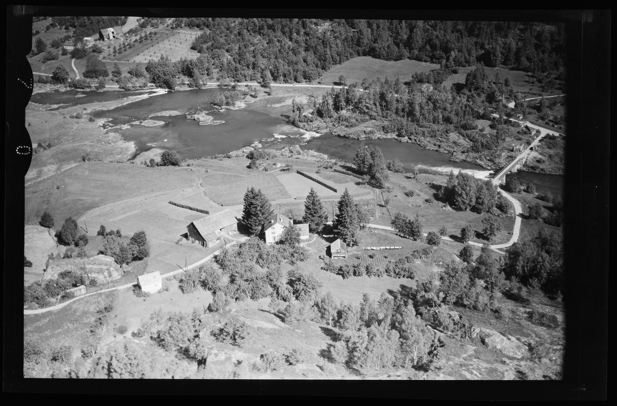 Det første bruket ein kjem til etter brua er Jørnbruket, bruk bnr. 7 . Tunet på dette bruket er vist midt på bildet.