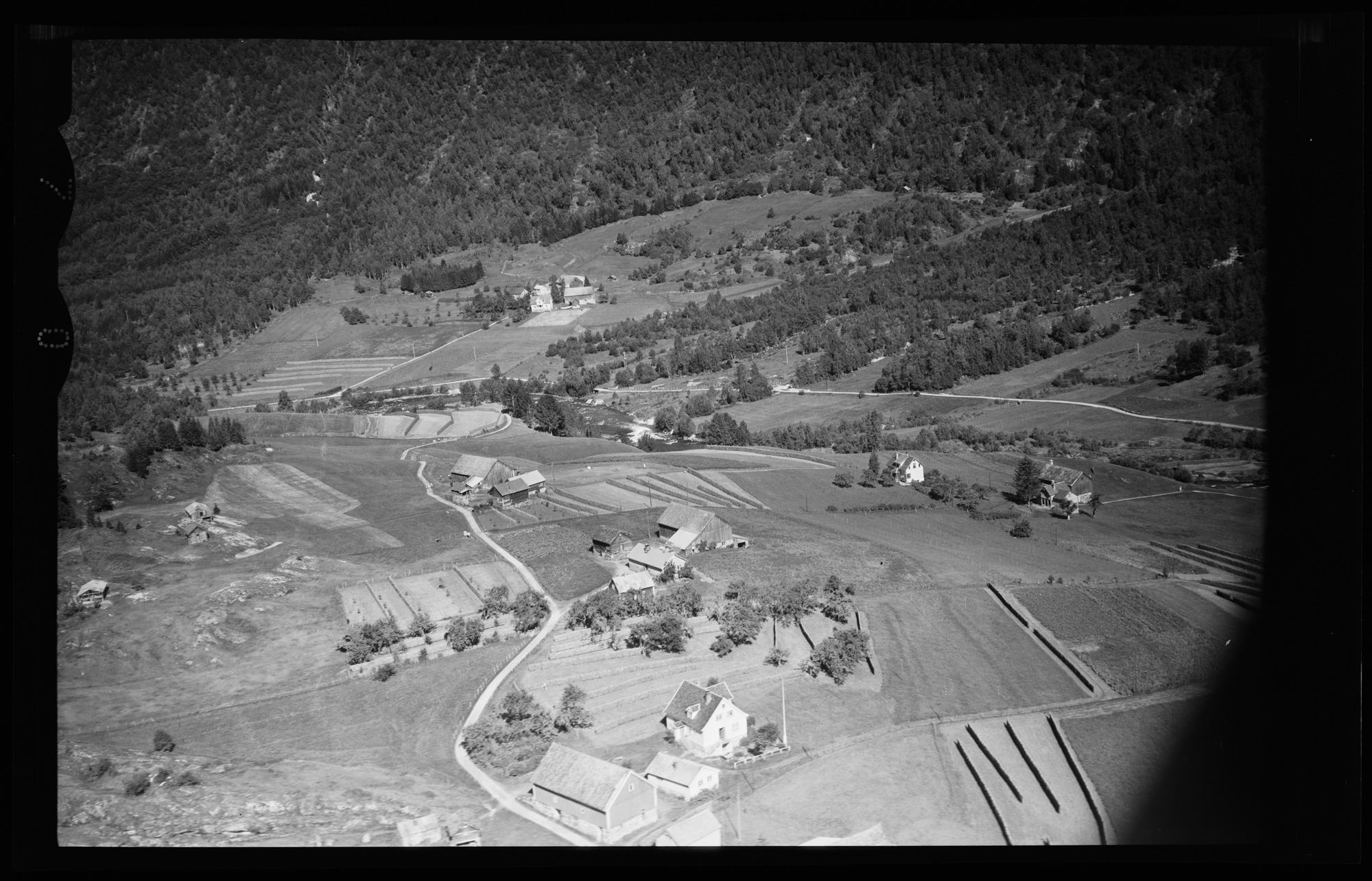 Fremst i dette bildet er tunet på Nigardsbruket (sjå forrige bilde). Deretter følgjer Oppigardsbruket, bruksnr 4. og Olabruket, bruksnr. 5 langs kjerrevegen nedover mot Loen på Sætasida.