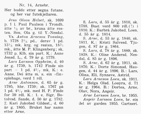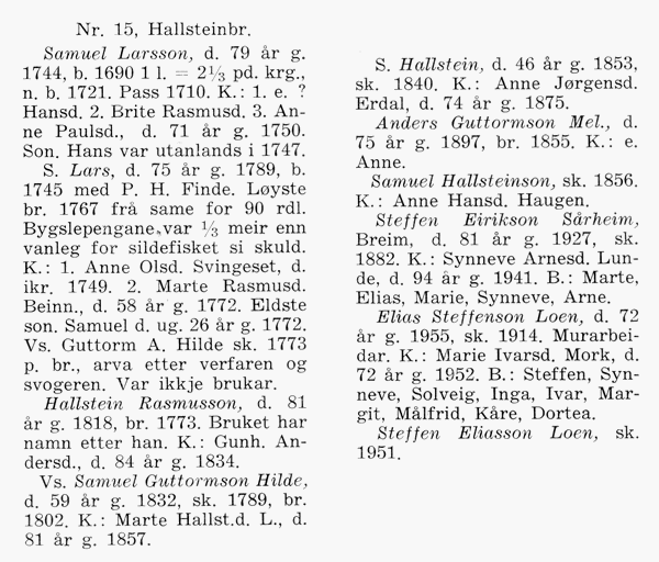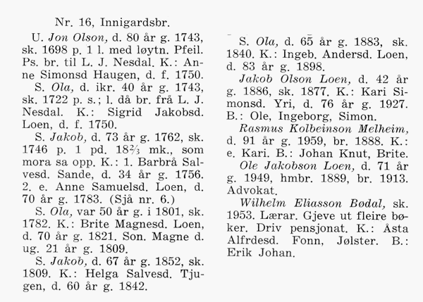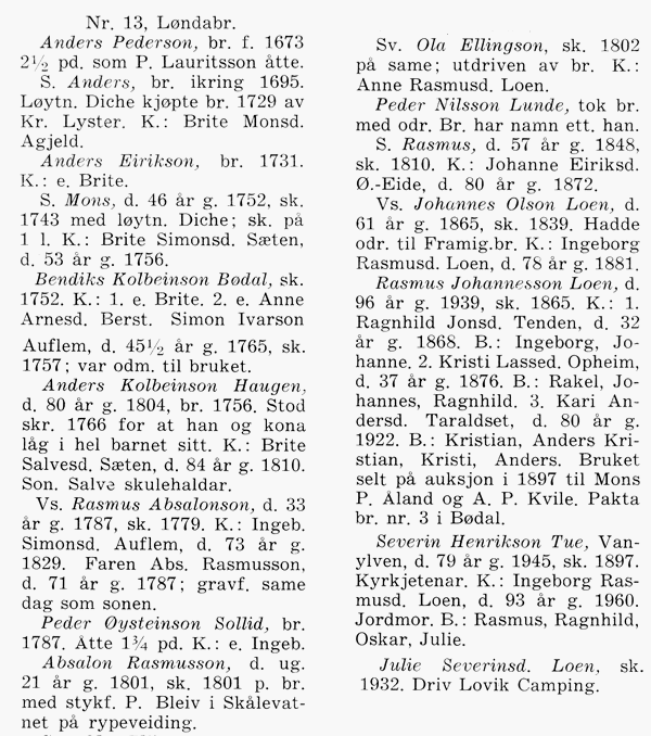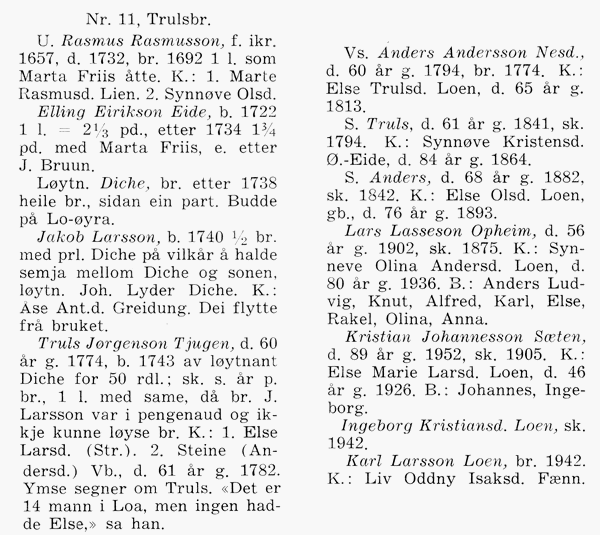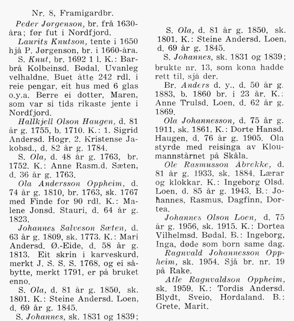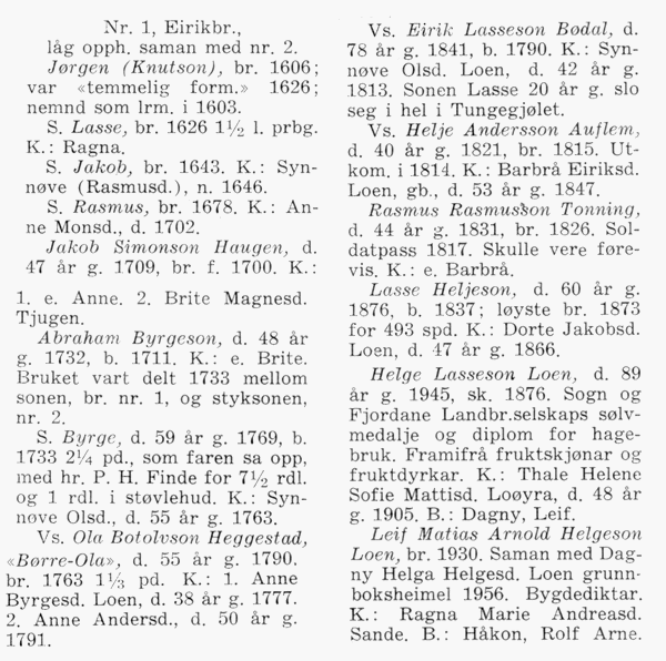 Velg bruk i menyen til venstre/over og vis kopi av sider i bygdeboka for bruket
