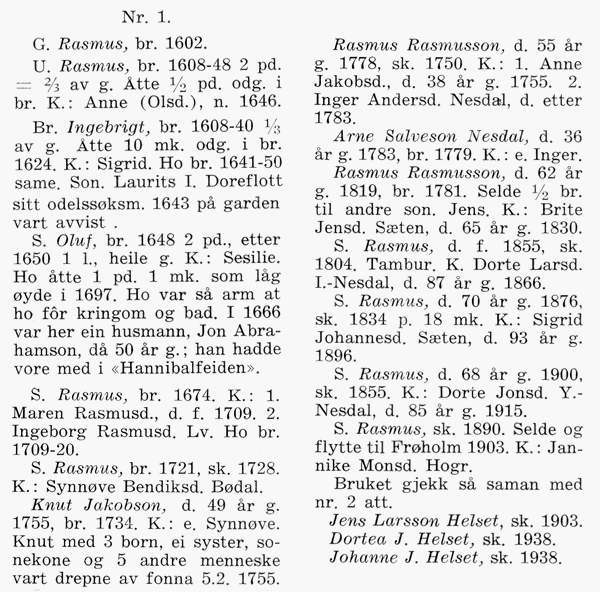 Velg bruk i menyen til venstre/over og vis kopi av sider i bygdeboka for bruket