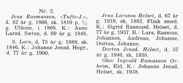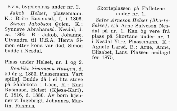 Persondel for dei einskilde bruka på garden Helset