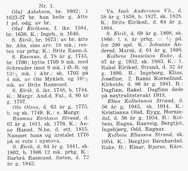 Velg bruk i menyen til venstre/over og vis kopi av sider i bygdeboka for bruket