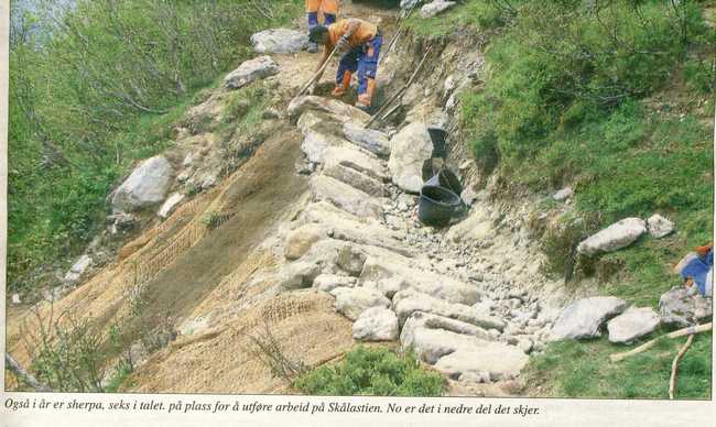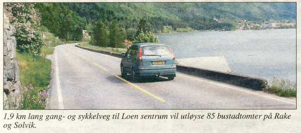 Tre lag har vore i arbeid med omlegging av vegen rundt Loen-bukta. Vi har snakka med overingeniør Sørum om kva tid denne vegen kan vere ferdig, og han trur at arbeidet skal vere ferdig ein gong på ettersommaren 1958. Målet var til sommarsesongen, men det er for lite pengar.
