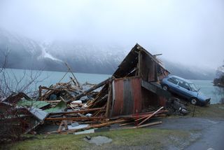 Berit Myren (66) oppheldt seg i kjellaren då det ca 30 år gamle bustadhuset på Helset i Lodalen vart knust til pinneved av orkanen Dagmar. Ho søkte tilflukt i betonggarasjen, og der vart ho berga av naboen Jan Ove Hogrenning som køyrde heilt inntil med traktor.