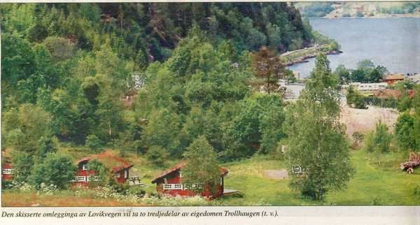 Arne Loen har skissert ei løysing med justert veglinje som ikkje gjer så stort inngrep på Trollhaugen, og der Nordfjord Kjøtt sitt parkeringsbehov vert løyst utan å etablere ny parkeringsplass mellom hyttene og bustadfeltet i Lovik.