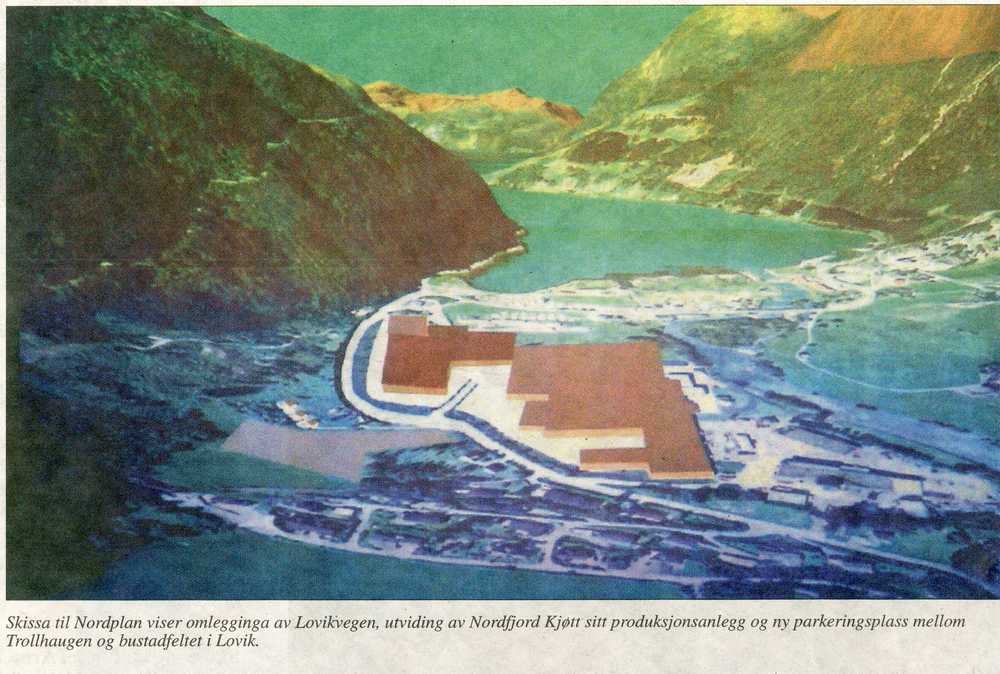 På formannskapsmøtet vart det lagt fram skisse, der Nordplan synleggjer omlegging av Lovikvegen og Nordfjord Kjøtt sineplanar for utviding av produksjonsanlegg og fryseri. Dette medfører flytting av noverande parkeringsplass til eit areal mellom Arne Loen sin eigedom Trollhaugen og bustadfeltet i Lovik.