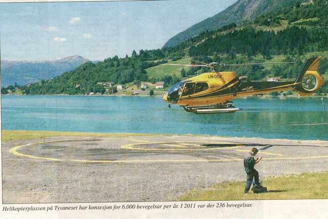 I 2005 kom Stryn kommune og bad meg vurdere utbygging av Loen helikopterplan Tyvaneset. Det blei i ettertid fortalt meg at landingsplassane i Olden var midlertidige. Stryn kommunestyre si vurdering i 2006 var at helikopterplassane på Solheim og Sandnes skulle vurderast opp mot den «nye» plassen på Tyvaneset i 2011/2012. Sesongen 2011 vart det 236 bevegelsar av totalt løyve på 6.000 bevegelsar per år. Tyvaneset som i dag er tilgjengeleg for alle helikopterselskap, har god kapasitet, Etter mi meining er det ikkje behov for landingsplassane i Olden, hevdar eigaren av Loen helikopterplass Tyvaneset, Leif Arne Loen.