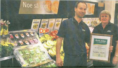 Eg er stolt over vere joker-kjøpmann, sa Drageset under utdelinga nyleg. Han sende samstundes ei raus takk til damene han har i arbeid, og sa at det var i stor grad deira forteneste at det var så bra butikk.